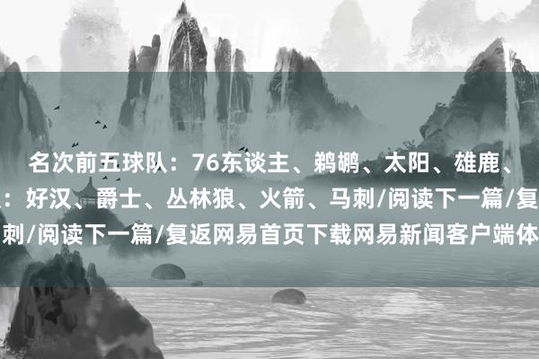 名次前五球队:76东谈主、鹈鹕、太阳、雄鹿、老鹰名次倒数前五球队:好汉、爵士、丛林狼、火箭、马刺/阅读下一篇/复返网易首页下载网易新闻客户端体育集锦