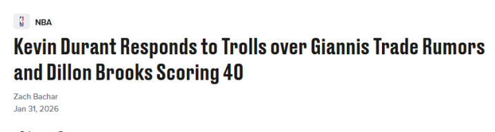 北京时辰2月1日,键盘侠KD又上线了!火箭队球星杜兰特,对于我方的名字卷入字母哥与密尔沃基雄鹿队的往复谣喙一事,颇感不测。此外体育赛事直播,他还回复了狄龙近日40分爆发。