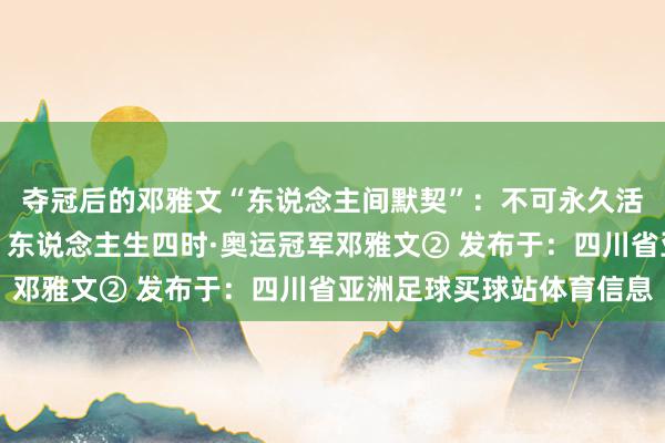 从粗野历练到掌声追捧亚洲足球买球站体育信息,夺冠后的邓雅文“东说念主间默契”:不可永久活在奥运冠军四个字里丨东说念主生四时·奥运冠军邓雅文② 发布于:四川省